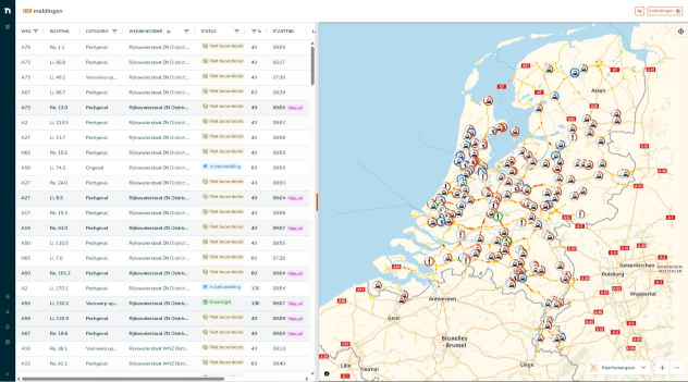 Aan de linkerkant van het scherm bevindt zich het menu die standaard ingeklapt is. Het menu kan uitgeklapt worden met de twee pijltjes (>>) onderaan het menu. Hier vind je een directe link naar de NDW viewer, export mogelijkheden, een overzicht met doorgevoerde updates en het account-menu.