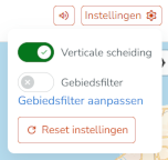 In de weergave instellingen kan gekozen worden voor een verticale of horizontale scheiding tussen de kaart en de tabel.