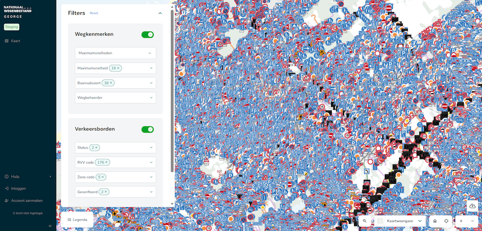 Deze vlag dekt niet helemaal de lading, want de applicatie biedt ook inzicht in wegkenmerken. Je komt standaard binnen op het wegkenmerken deel van de applicatie. Als je de applicatie vaker gebruikt en cookies toelaat, kom je daar waar je de vorige keer eindigde.